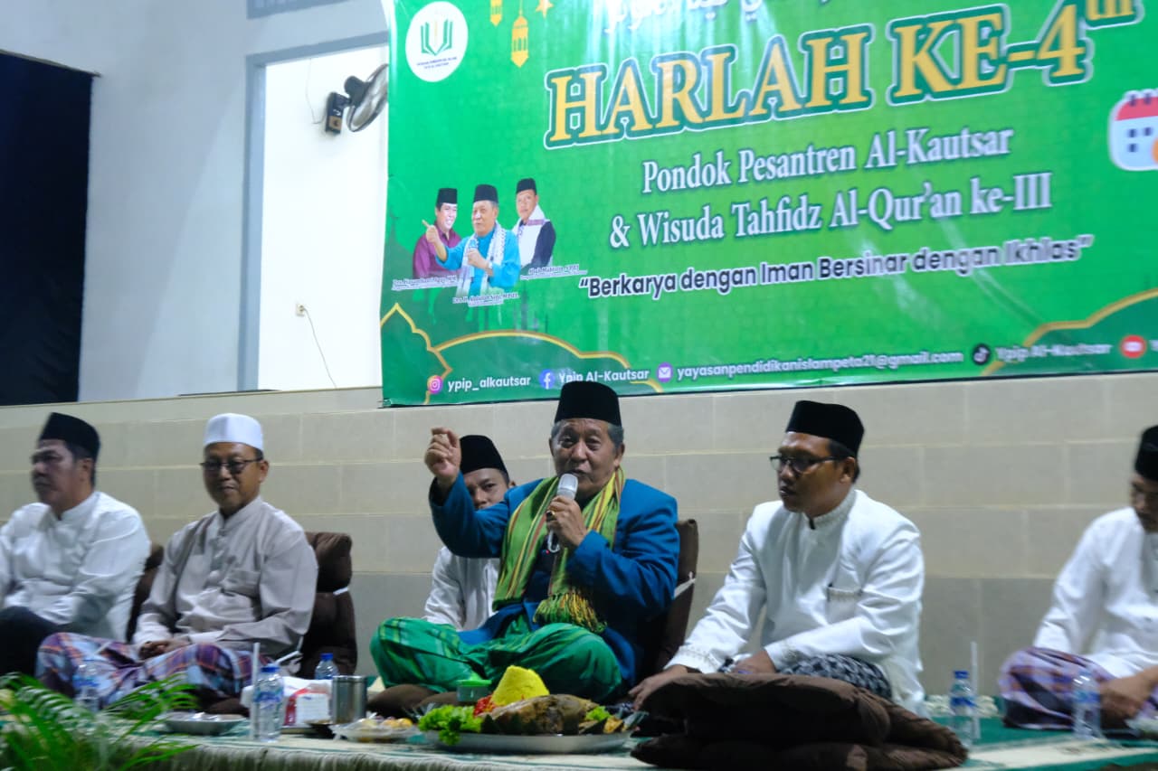 Sementara itu, Ketua penyelenggara Harlah Pondok Pesantren Al-Kautsar yang ke- 4 dan Wisuda Tahfidz Zainal Arifin menyampaikan ucapan terima kasih kepada Wakil Gubernur Jambi yang telah bersedia hadir dan sekaligus akan memberikan tauziah untuk semua yang hadir. “Kami ucapkan terima kasih kepada Bapak Wagub Jambi H. Abdullah Sani, yang bersedia hadir sekaligus akan memberikan tauziah kepada kita semua, pada kesempatan ini ucapan terima kasih kepada orang tua wali murid yang telah menyerahkan anak-anaknya untuk belajar di ponpes ini, kemajuan ponpes ini saat ini ada 57 murid yang mondok disini, ditambah 20 orang yang baru masuk, tadi sudah kita wisuda itulah hasil yang kita tampilkan,” ucapnya. (*)